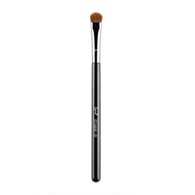 The Sigma E55 - Eye Shading Brush features a soft and dense squared brush head with slightly rounded edges.
